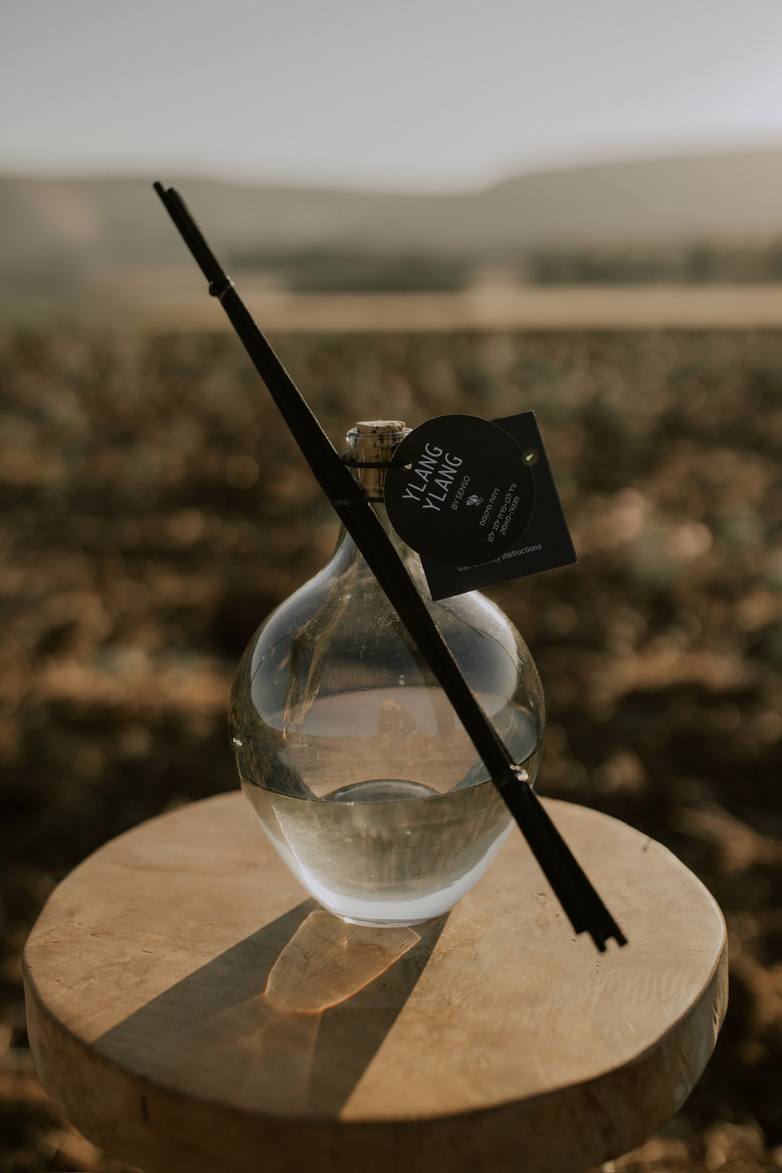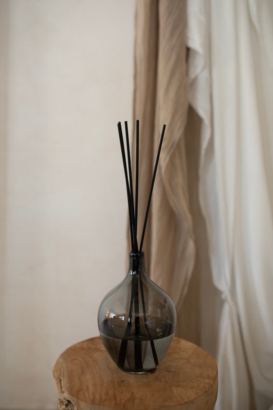 מפיץ ריח מעוצב בנפח 500 מ״ל, בכלי זכוכית שחור חצי שקוף המוסיף נגיעה אלגנטית ומודרנית לכל חלל. המקלות הטבעיים סופגים את השמן ומפיצים את הניחוח בעדינות, כך שהחדר מתמלא בריח יוקרתי, מאוזן ומתמשך לאורך זמן.